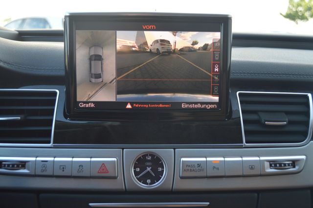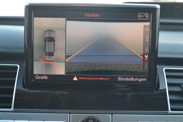 Airbag Beifahrerseite abschaltbar, Anhängerkupplung Vorbereitung, Assistenz-Paket inkl. Audi pre sense plus, Doppelverglasung / Akustikglas, Durchladeeinrichtung (Mittelarmlehne hinten), Gepäckraum-Paket, Gepäckraumklappe elektr. betätigt (öffnen + schliessen), Head-up-Display, Innenausstattung: Dekoreinlagen Holz Pappelmaser, Innenausstattung: Dekoreinlagen unten Aluminium gebürstet, Innenausstattung: Erweiterte Aluminium-Optik, Ionisator zur Luftreinigung (Air-Quality-System), Kamerasystem Umgebungsansicht (Top View), Komfort-Klimaautomatik 4-Zonen, Komfortsitz-Paket vorn, Metallic-Lackierung, Multi-Media-Interface MMI Navigation Plus, Reserverad als Notrad, Schiebe-/Hebedach elektr. (Glas) mit Vorwahlautomatik, Sender für Garagentoröffner (integriert), Servoschliessung für Türen, Sitzbelüftung und Massagefunktion vorn, Sonnenschutzrollo an Heckscheibe und Seitenscheibe hinten elektr., Sound-System BOSE, Steckdose 230V