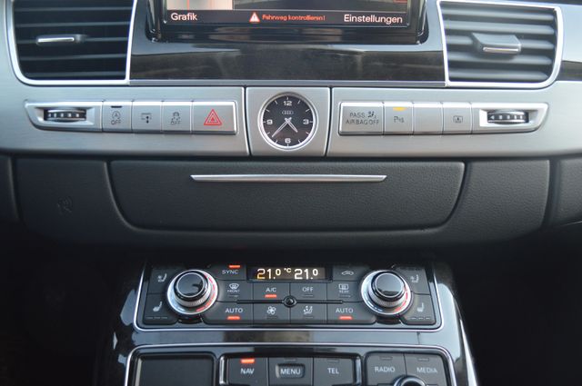 Adaptives Bremslicht, Airbag Fahrer-/Beifahrerseite, Antriebs-Schlupfregelung (ASR), Audi Drive Select, Außenlicht- und Innenlicht-Paket, Außenspiegel asphärisch, links, Außenspiegel asphärisch, rechts, Außenspiegel elektr. verstell-, heiz- und anklappbar, mit Abblendautomatik und Bordsteinautomatik, Außenspiegel Wagenfarbe, Blinkleuchten LED in Außenspiegel integriert, Bremsanlage mit Rekuperationssystem, Bremsassistent, Dachhimmel Stoff, Silber, Diebstahlsicherung für Räder (Felgenschlösser), Einstiegsleisten mit Aluminiumeinlage, Elektron. Differentialsperre (EDS), Fahrassistenz-System: Anfahr-Assistent (hold assist), Fahrassistenz-System: Insassen-Schutzsystem (Audi pre sense basic), Fahrer-Informations-System (FIS) mit Farbdisplay, Fahrwerk (adaptive air suspension), Fondsitzanlage (3 Sitzplätze), Fußmatten Velours, Heckleuchten LED, Innenspiegel mit Abblendautomatik, Isofix-Aufnahmen für Kindersitz, Karosserie: 4-türig, Kopf-Airbag-System (Sideguard), Lendenwirbelstützen vorn, elektr. verstellbar, Lenksäule (Lenkrad) höhenverstellbar, Motor 3,0 Ltr. - 190 kW V6 24V TDI, Multi-Media-Interface MMI, Multi-Media-Interface MMI Basic Plus / MMI Radio Plus, Parkbremse elektro-mechanisch, Raucher-Paket, Reifenkontroll-Anzeige, Schadstoffarm nach Abgasnorm Euro 6, Schalt-/Wählhebelgriff Leder, SCR-System (AdBlue-Technologie), Seitenairbag vorn und hinten, Servoschliessung für Kofferraumdeckel, Sitz vorn links höhenverstellbar, Sitz vorn rechts höhenverstellbar, Sitzbezug / Polsterung: Stoff Verdi, Start/Stop-Anlage